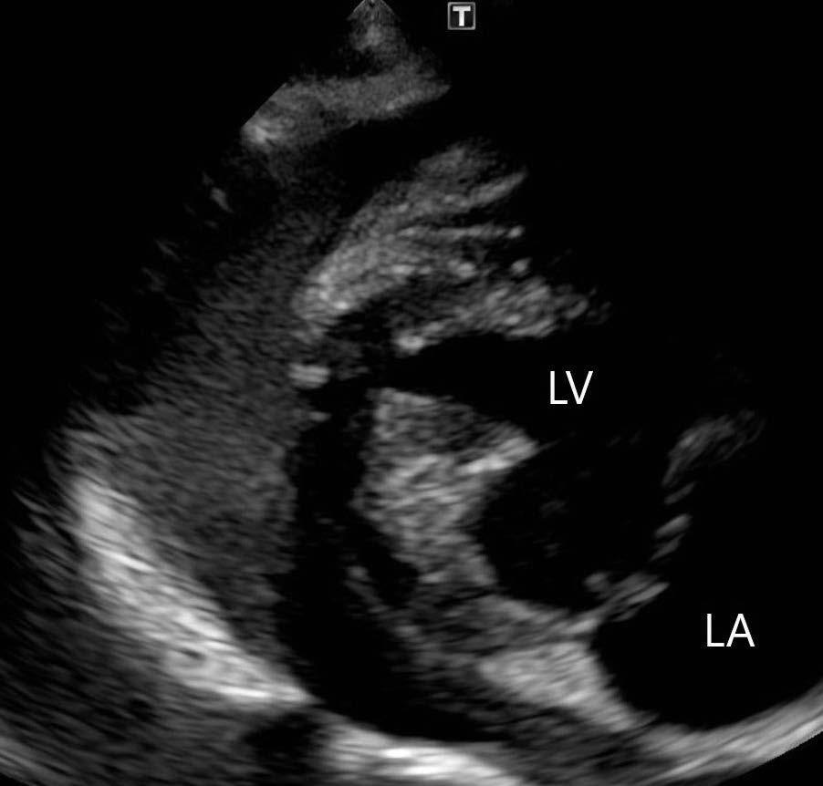 本症例のように重度の粘液腫様変性性僧帽弁疾患(MMVD)を有しており,突然の虚脱が認められた場合に,①左心房破裂(心タンポナーデを伴うとは限らない),②急性心不全による心原性肺水腫を鑑別に挙げる必要がある.①は急性に左心房の裂け目から心膜腔内へ出血する.出血による循環血液量の低下に加えて,心臓の拡張が障害され全身への拍出が低下して,全身血圧が低下することにより虚脱が起こる.②は呼吸不全による低酸素血症のため虚脱を起こすことがある.ただし呼吸困難や頻呼吸が主症状として現れるため,一見すると①との判別は容易と思われる.しかし本症例のように急性に虚脱を引き起こした場合には,心不全を呈していなくとも呼吸困難や頻呼吸が認められるため,注意が必要である.過去の報告では,MMVDによる左心房破裂症例の半数程度は呼吸困難・頻呼吸を呈していたが,心不全を併発していなかった症例も1/3 程度存在していた[1].そのため症状では判別が難しい場合もあるため,急性の虚脱が認められた症例には,まずはポイント・オブ・ケア胸部超音波検査が非侵襲的かつ迅速に実施可能な検査として有用と考える.