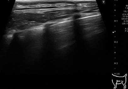 質問2:ポイント・オブ・ケア胸部超音波検査で得られた結果より最も疑わしい病態は何か.その治療法として考えられるものは何か.